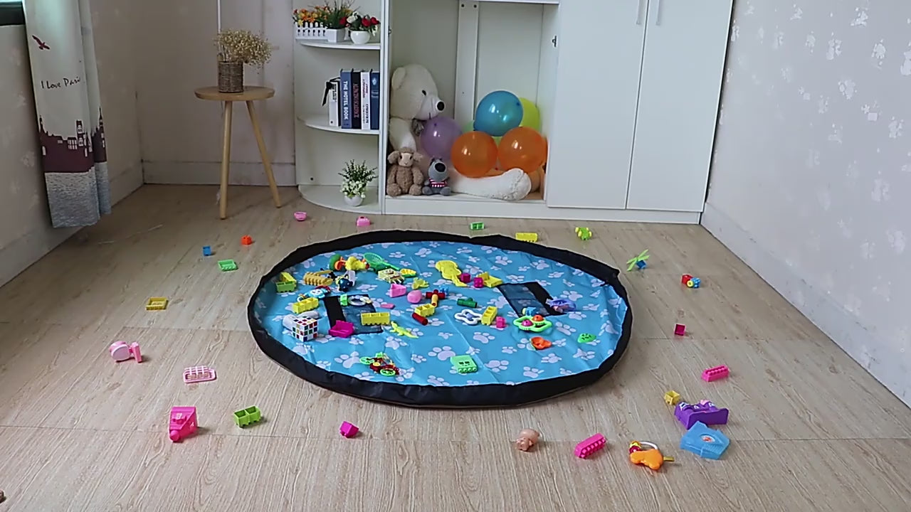 Kad je vrijeme za spremanje, samo povucite trake i podloga će se pretvoriti u vreću koja sigurno pohranjuje sve igračke. Djeca će s oduševljenjem sudjelovati u spremanju svojih igračaka!